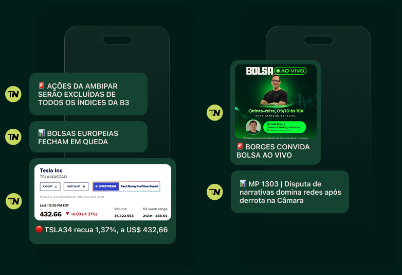 Mas só se for a informação certa na hora certa. O TradeNews filtra o excesso e entrega apenas o que realmente importa.