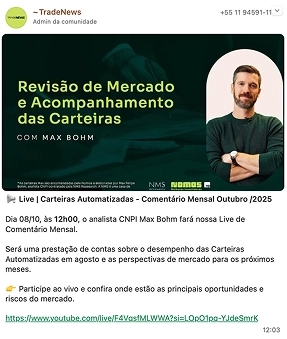 O acesso completo é exclusivo para clientes ativos da Nomos. Mas você pode experimentar entrando no grupo trial gratuito ou clicar aqui para conhecer o serviço pago.