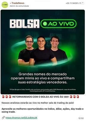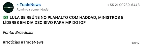 O TradeNews chega direto no seu WhatsApp e você pode escolher quando receber notificações ou quando silenciar o grupo.
